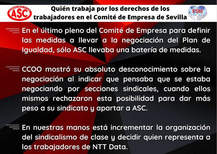 Por tanto, NTT Data no necesita motivos para imponer a un trabajador la sanción más grave que la ley permite, despojándolo de su puesto de trabajo de una forma tan rastrera y deshaciéndose de los trabajadores que le ‘sobran’. Esta es la realidad de esta empresa y del mundo del trabajo en este sistema; por mucho que lo disfracen de democracia, la única libertad que tenemos los trabajadores es la de morirnos de hambre, ya que nuestros puestos de trabajo, nuestro sustento, no nos pertenecen y las empresas no dudan en darnos una patada y mandarnos a la calle sin pestañear.